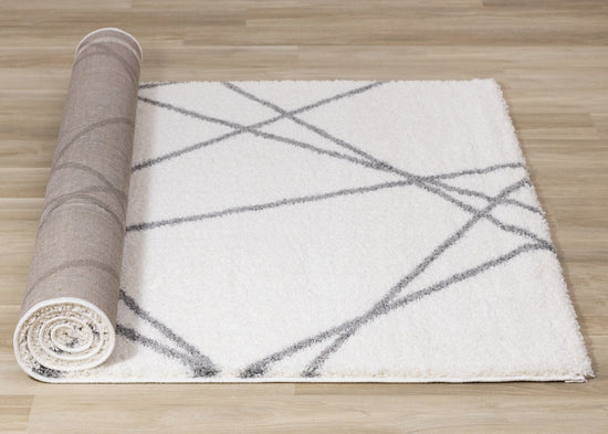 Alfombra peluda Fergus White Grey Lines Crossing de Kalora Interiors
