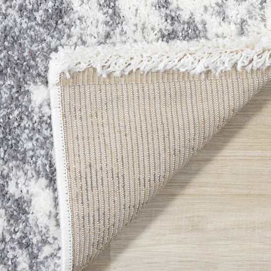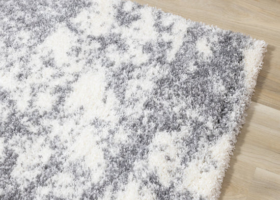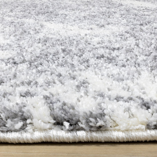 Las alfombras Fergus tienen una textura peluda y están hechas con hilo sintético suave. Los diseños contemporáneos vienen en agradables grises y cremas.