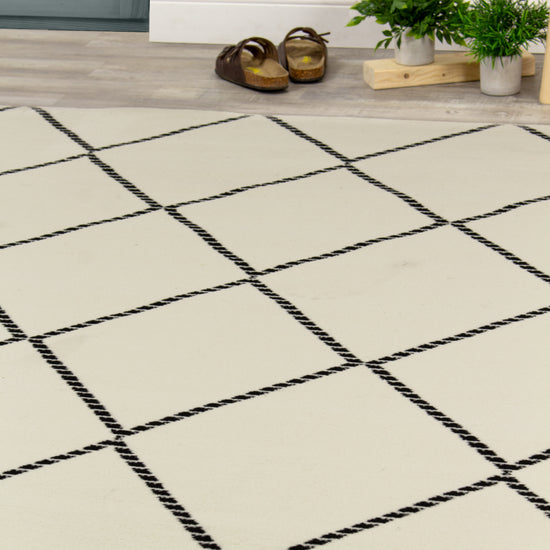 Fiona 3617_0933 Alfombra enrejada blanca y negra de Novelle Home