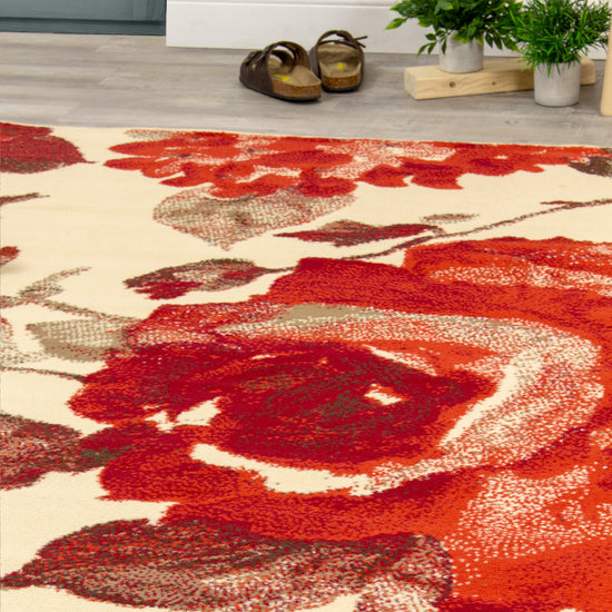 Fiona 5035_3933 Red Vintage Botanical Flower Area Rug by Novelle Home