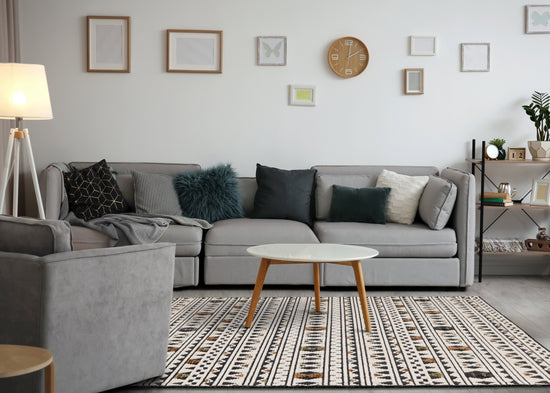 Lawson Cream Grey Orange Southwest Inspired Machine Washable Foldable Rug by Kalora Interiors