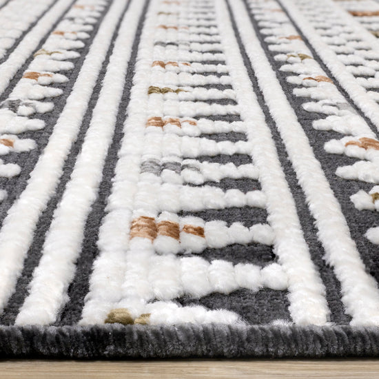 The Lawson collection emanates a casual sophistication with its linear drop-stitch textured construction and approachable designs. Highlighted by rich grey, white, and rust colours this collection is flexible and fashionable, folding for easy shipping and storage. Made from a blend of Heatset Polypropylene and Polyester, with a soft chenille flatweave pile.