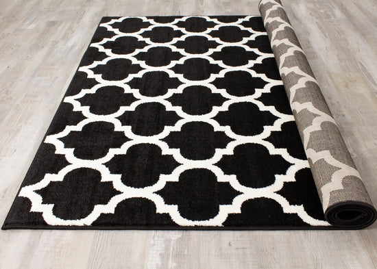 Siecle 16106_80 Black Cream Ogee Pattern Area Rug by Novelle Home