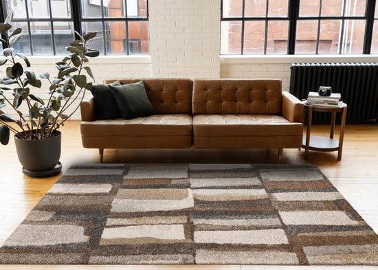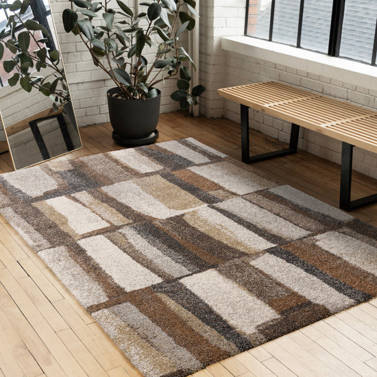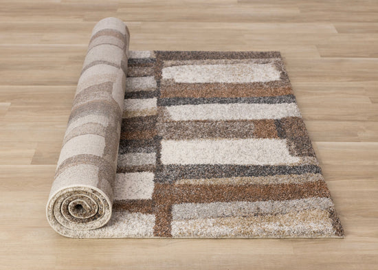Marquis Orange Brown Cream Grey Organic Patched Design Rug
