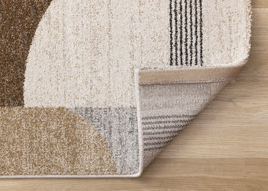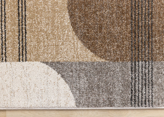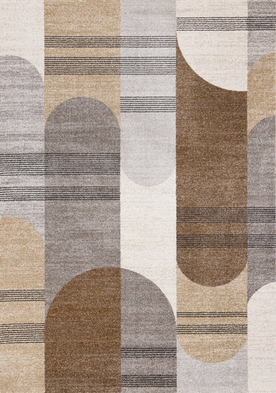 Marquis Brown Grey White Striped Arched Shapes Design Rug