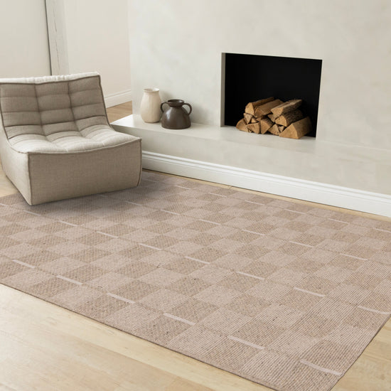 Peak Beige White Checkered Design Rug
