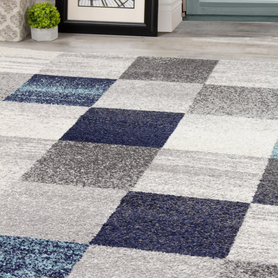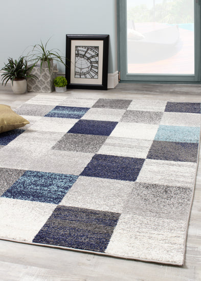 Converge 8942_2939 Blue Grey Squares Area Rug by Novelle Home