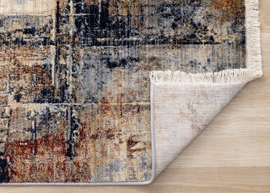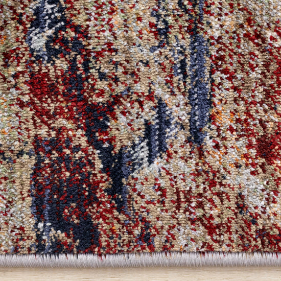 Serene Red Blue Beige Layered Distressed Rug