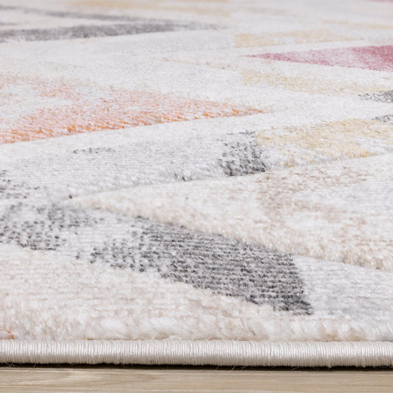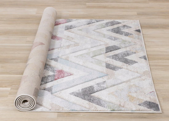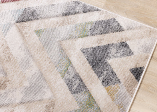 Folio Cream Grey Blue Pink Yellow Distressed Carved Chevron Rug