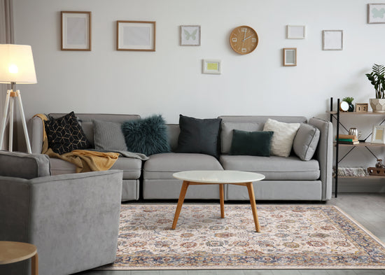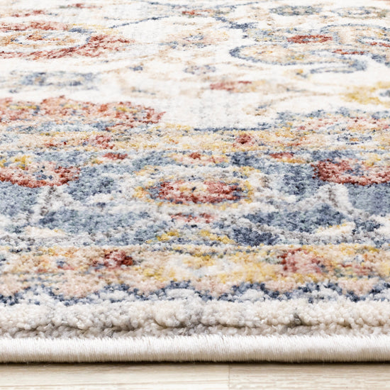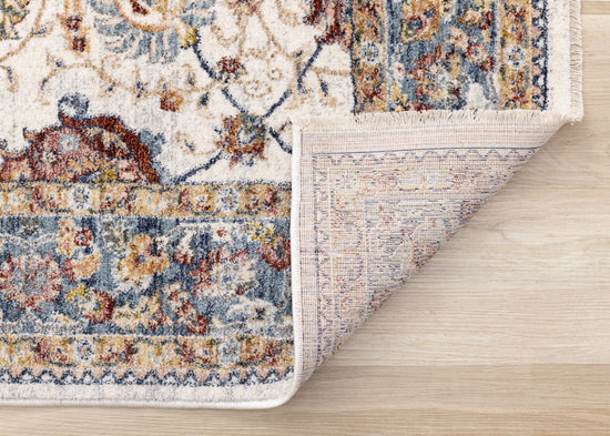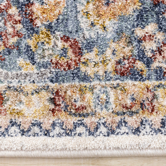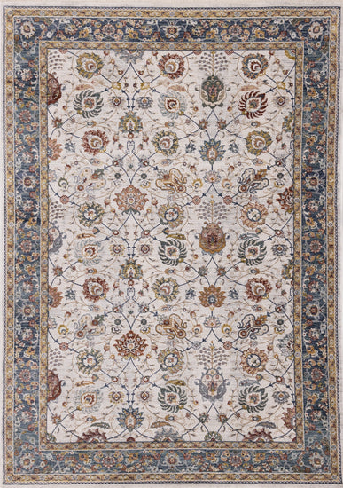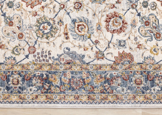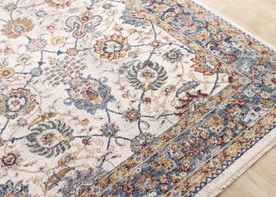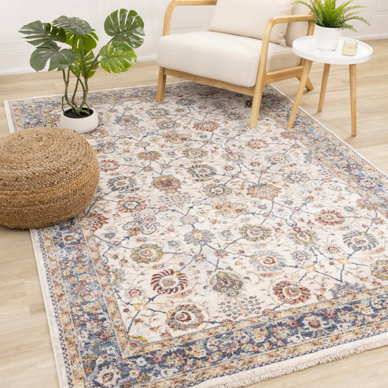 Marisa Cream Blue Traditional Border Floral Rug