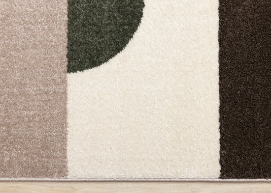 Malibu Taupe Green Cream Striped Curvy Geometric Design Rug