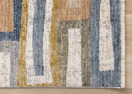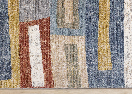 Muse Orange Red Blue Yellow Beige Layered Brick Design Rug