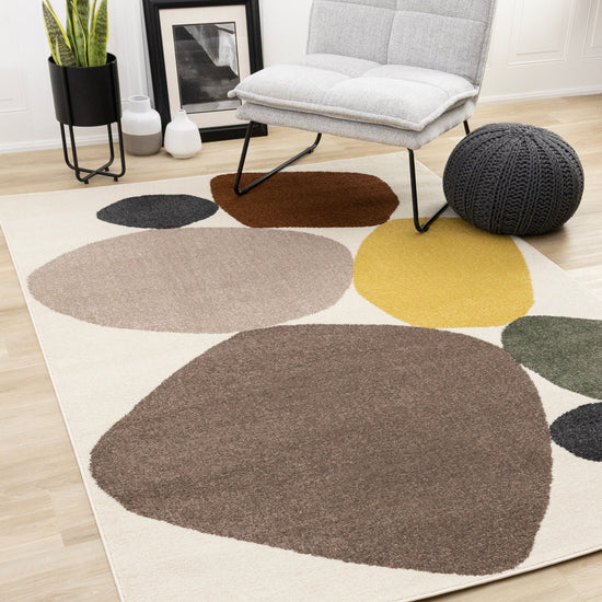 Malibu Cream Oxblood Green Yellow Pebbles Design Rug