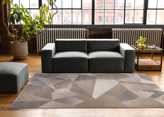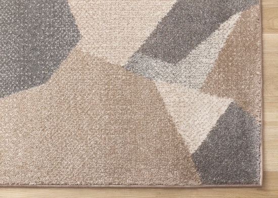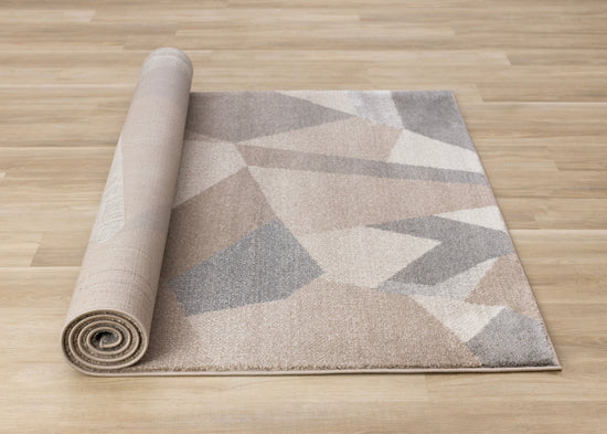 Shade Taupe Beige Grey White Shattered Geometric Design Rug