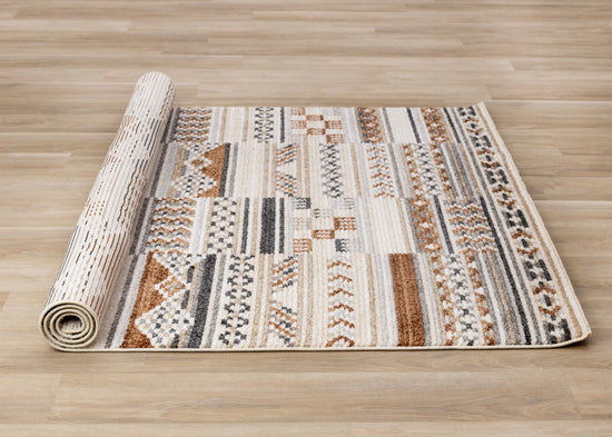 Nala Cream Grey Oxblood Striped Rows Southwestern Pattern Rug