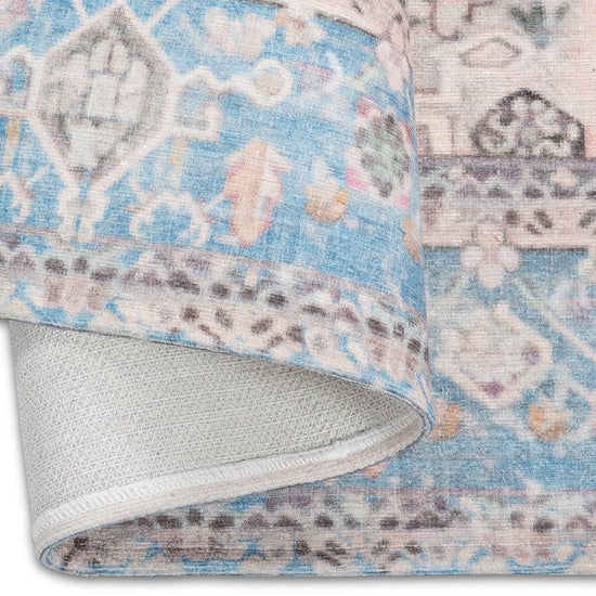 Sparx Distressed Blue Orange Washable Transitional Rug by Viana
