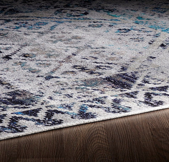 Sparx Medallion Blue Distressed Washable Modern Rug by Viana