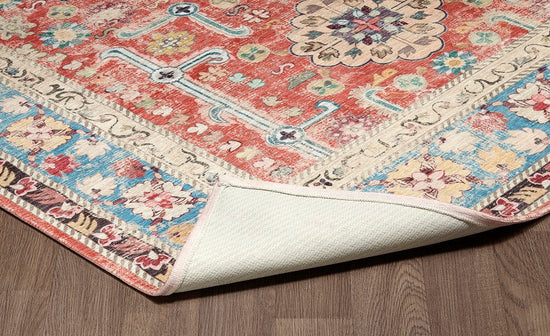 Sparx Medallion Orange Blue Distressed Washable Modern Rug by Viana