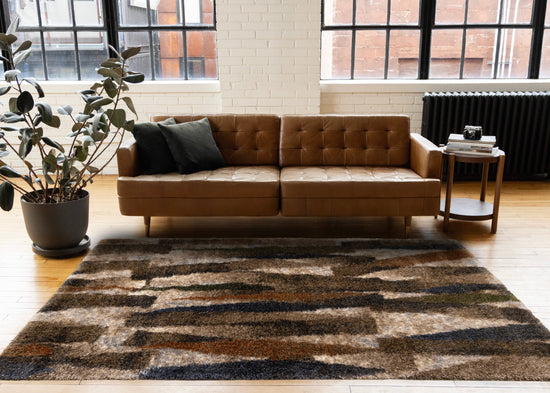 Posh Blue Orange Green Brown Brush Strokes Design Rug